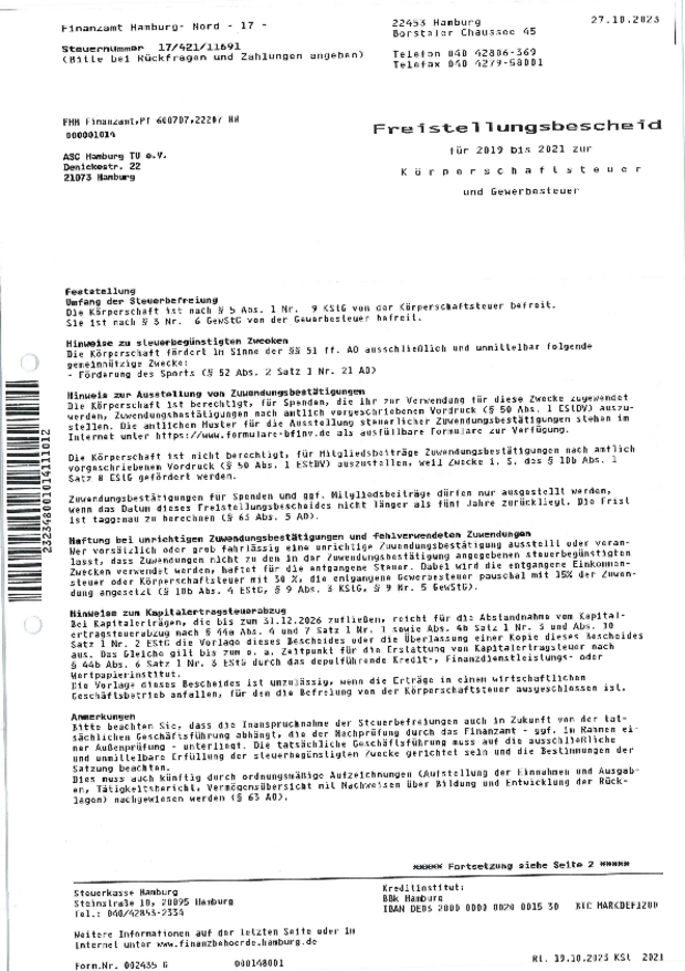 Der ASC ist ein eingetragener, gemeinnütziger Verein und darf Spenden entgegen nehmen. Für Spenden dürfen auch Spendenbescheinigungen ausgestellt werden. Die Mitgliedsbeiträge können nicht in der Einkommenssteuer als aussergewöhnliche Belastung geltend gemacht werden.